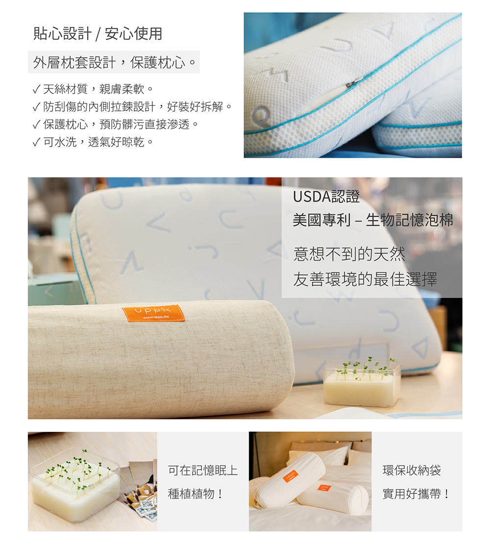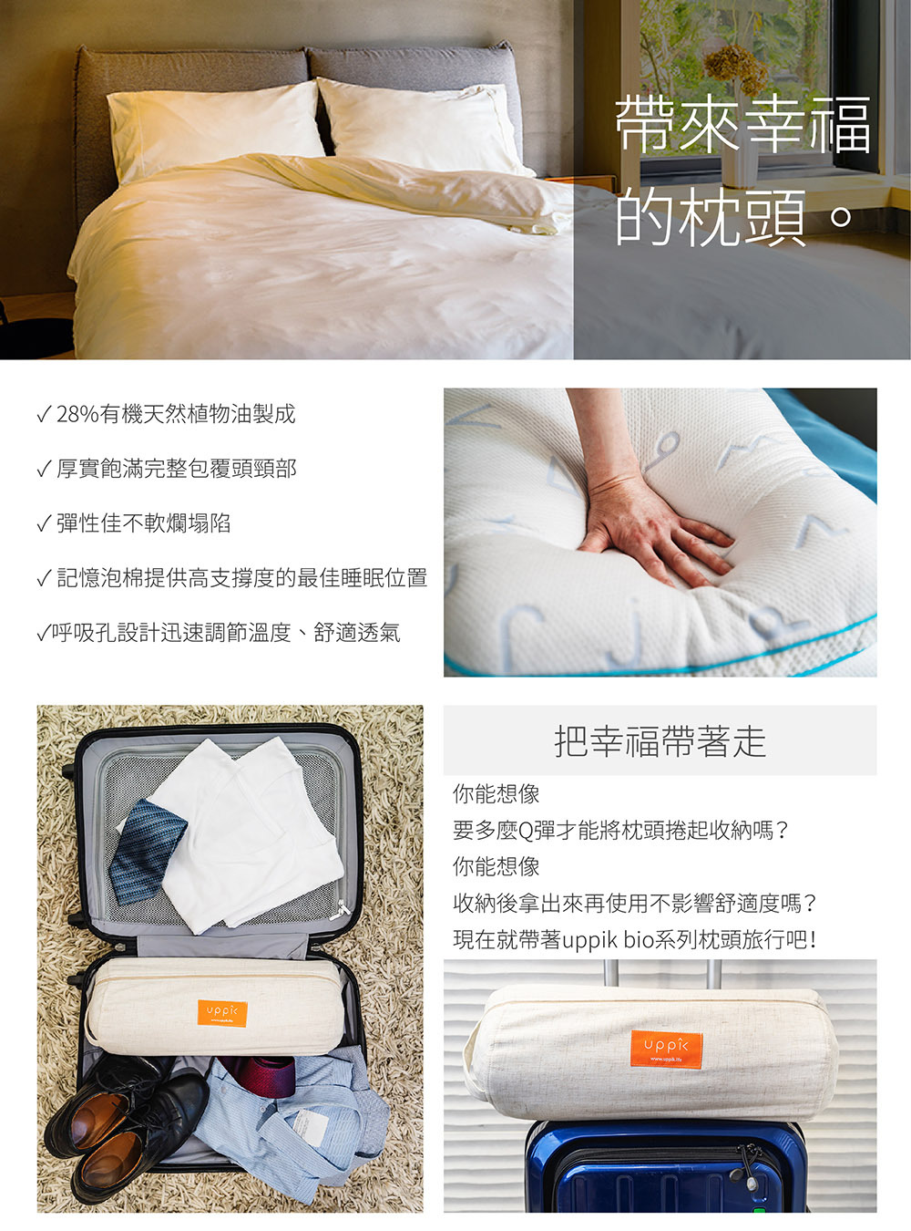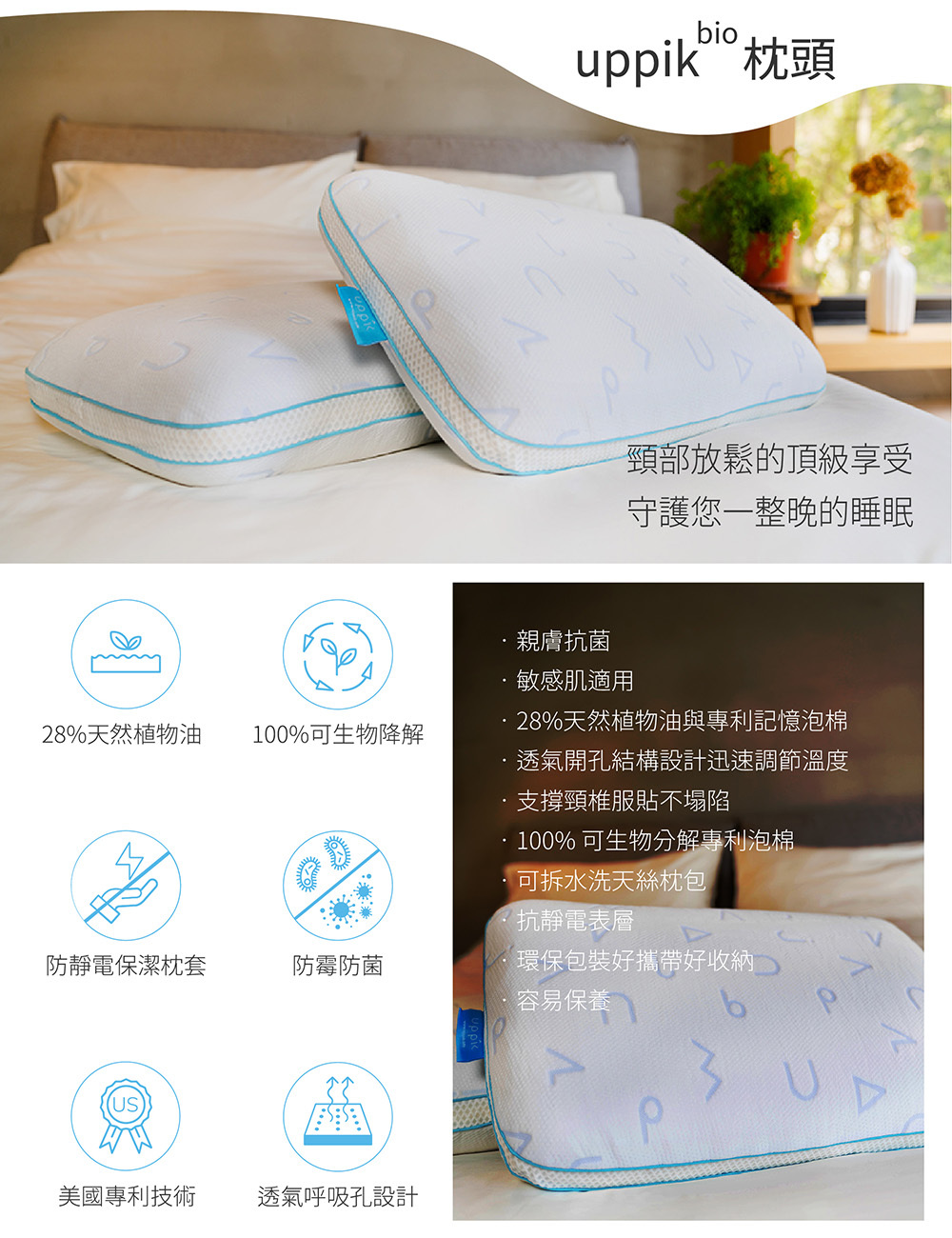 Uppik枕頭系列由天然材質製成,可以為您提供最佳的頸部支撐,有助於脊椎對齊,同時使您保持整夜乾爽。